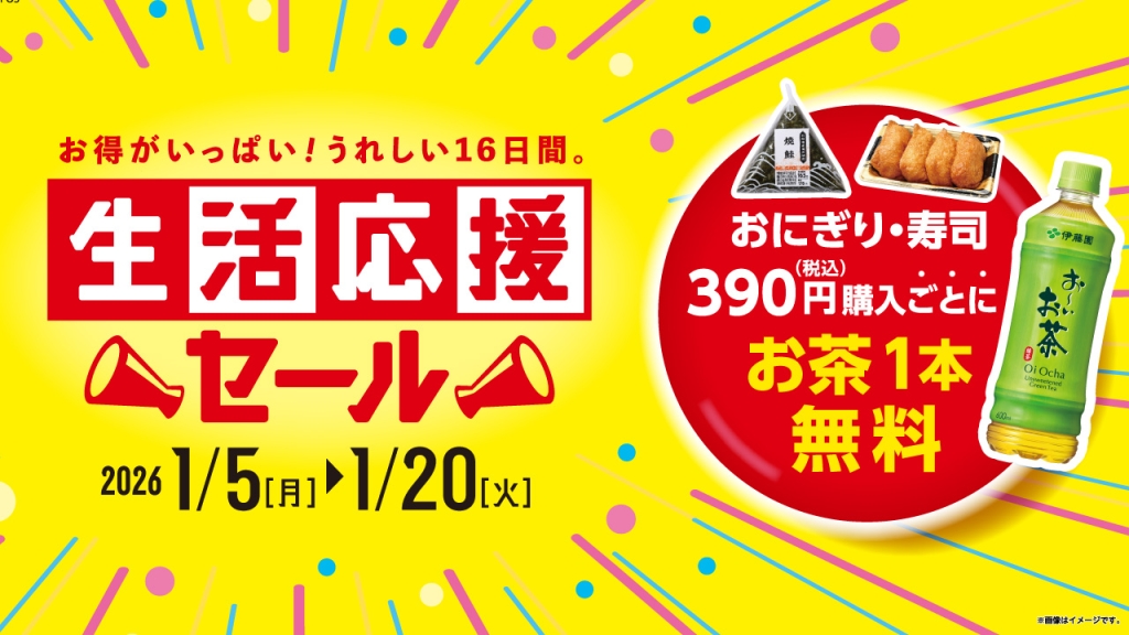 現在、国内で604店舗を展開している「ローソンストア100」は、新ストアコンセプト「あたらしい・おいしい・うれしい」の一環として、2026年1月5日(月)から「生活応援セール」を開催する。期間は2026年1月5日(月)〜1月20日(火)まで。