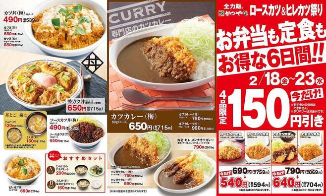 かつや「ロースカツ&ヒレカツ祭り」定食・弁当4品が150円引き、6日間限定開催