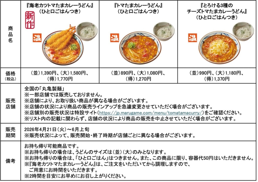 外食 2026年4月17日 【丸亀製麺】累計1200万食突破「トマたまカレーうどんシリーズ」に新作登場 3尾重ねて揚げた“海老カツ”の存在感がすごい 大人気「トマたまカレーうどんシリーズ」に新作登場 松岡昌宏さんと共同開発 累計1200万食を突破している人気シリーズ 12 シェアする Tweet 媒体情報 食品産業新聞 時代をリードする食品の総合紙 食品・食料に関する事件、事故が発生するたびに、消費者の食品及び食品業界に対する安心・安全への関心が高っています。また、日本の人口減少が現実のものとなる一方、食品企業や食料制度のグローバル化は急ピッチで進んでいます。さらに環境問題は食料の生産、流通、加工、消費に密接に関連していくことでしょう。食品産業新聞ではこうした日々変化する食品業界の動きや、業界が直面する問題をタイムリーに取り上げ、詳細に報道するとともに、解説、提言を行っております。 創刊:昭和26年(1951年)3月1日 発行:昭和26年(1951年)3月1日 体裁:ブランケット版 8~16ページ 主な読者:食品メーカー、食品卸、食品量販店(スーパー、コンビニエンスストアなど)、商社、外食、行政機関など 発送:東京、大阪の主要部は直配(当日朝配達)、その他地域は第3種郵便による配送 購読料:3ヵ月=税込15,811円、6ヵ月=税込30,305円、1年=税込57,974円 無料試読・購読のお申し込みはこちら PDFサンプル(無料)を見る