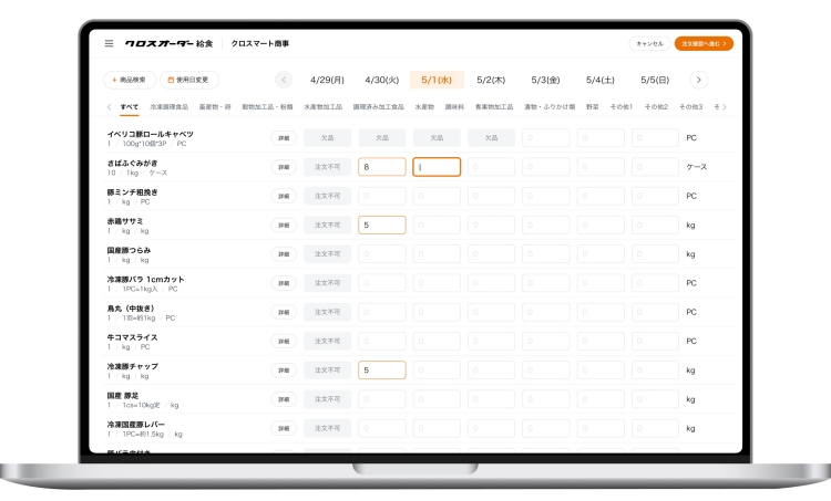 給食現場の煩雑な業務を解消するデジタルサービスとして業界初の機能を付与した“給食”のための受発注サービス。卸視点で操作性・機能性を高めている点と使用日単位で発注ができるなど給食業態独自の商習慣に合わせている点が画期的で、導入数が急増している。
